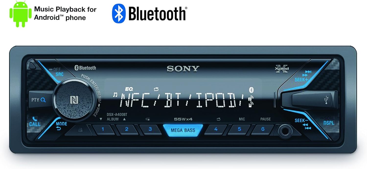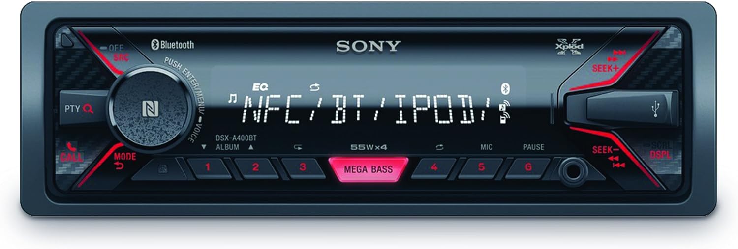 Sony DSX-A416BT Car radio With Dual Bluetooth, NFC, USB and AUX connection and Apple iPod/iPhone Control, 35000 Colours and Handsfree - Multi-Colour